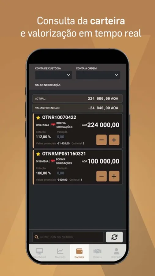 - Consulta da carteira e valorização em tempo real;