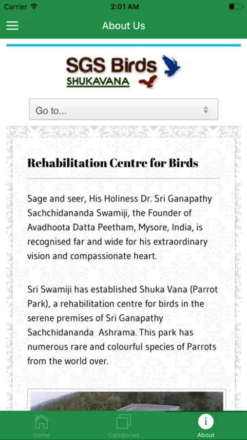 This app brings details, pictures and videos of Various rare species of parrots in Shukavana. It also gives regular Facebook and Youtube updates of SGS Birds Channels.