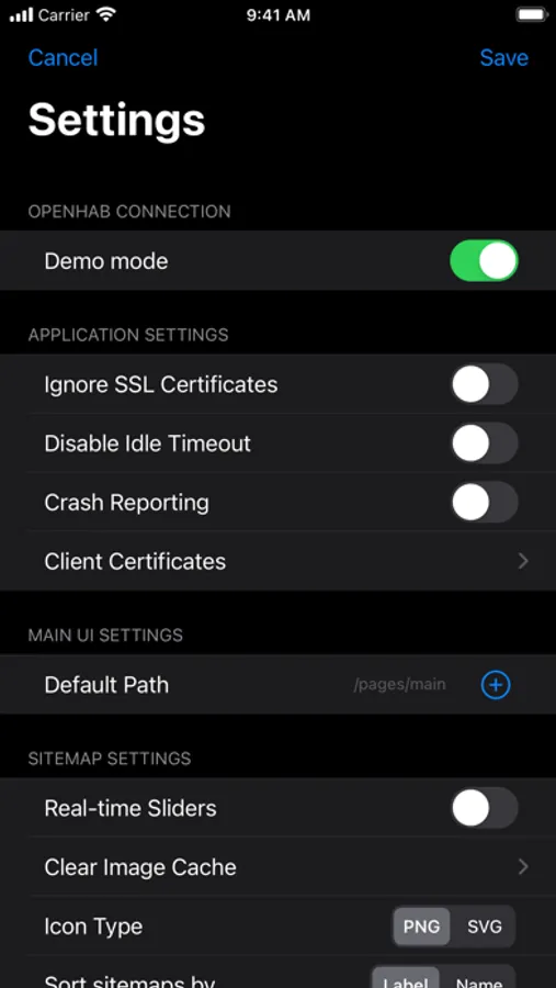 * Control everything on your openHAB server directly or remotely through the free openHAB Cloud service (https://myopenhab.org)