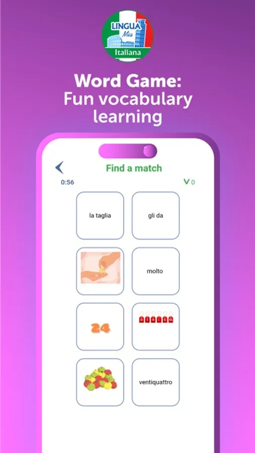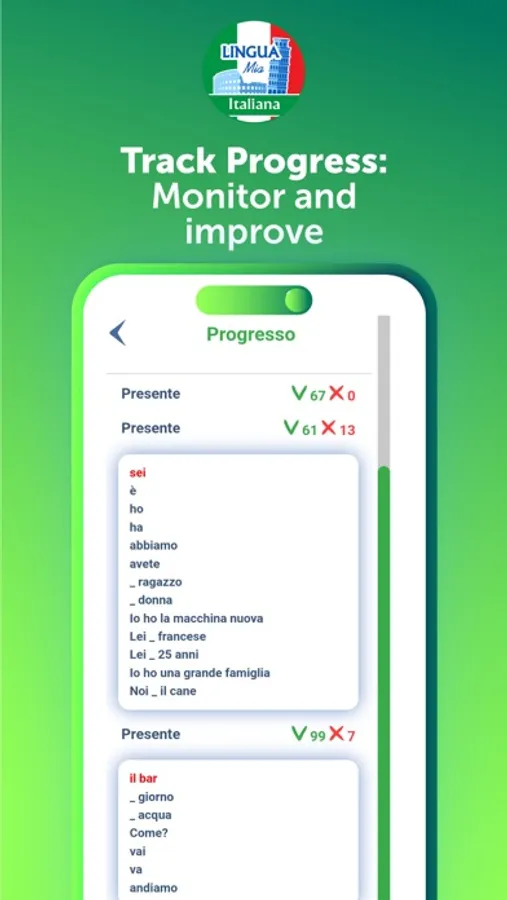 Interactive learning, colorful illustrations, support for 10 interface languages, over 10,000 Italian words and phrases to master with us. You also get: