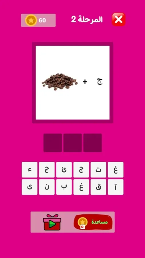 ستجد مرحلة عبارة عن حرف أو أكثر مع صورة وعليك دمج هذه الكلمة مع الصورة لتجد الجواب الصحيح