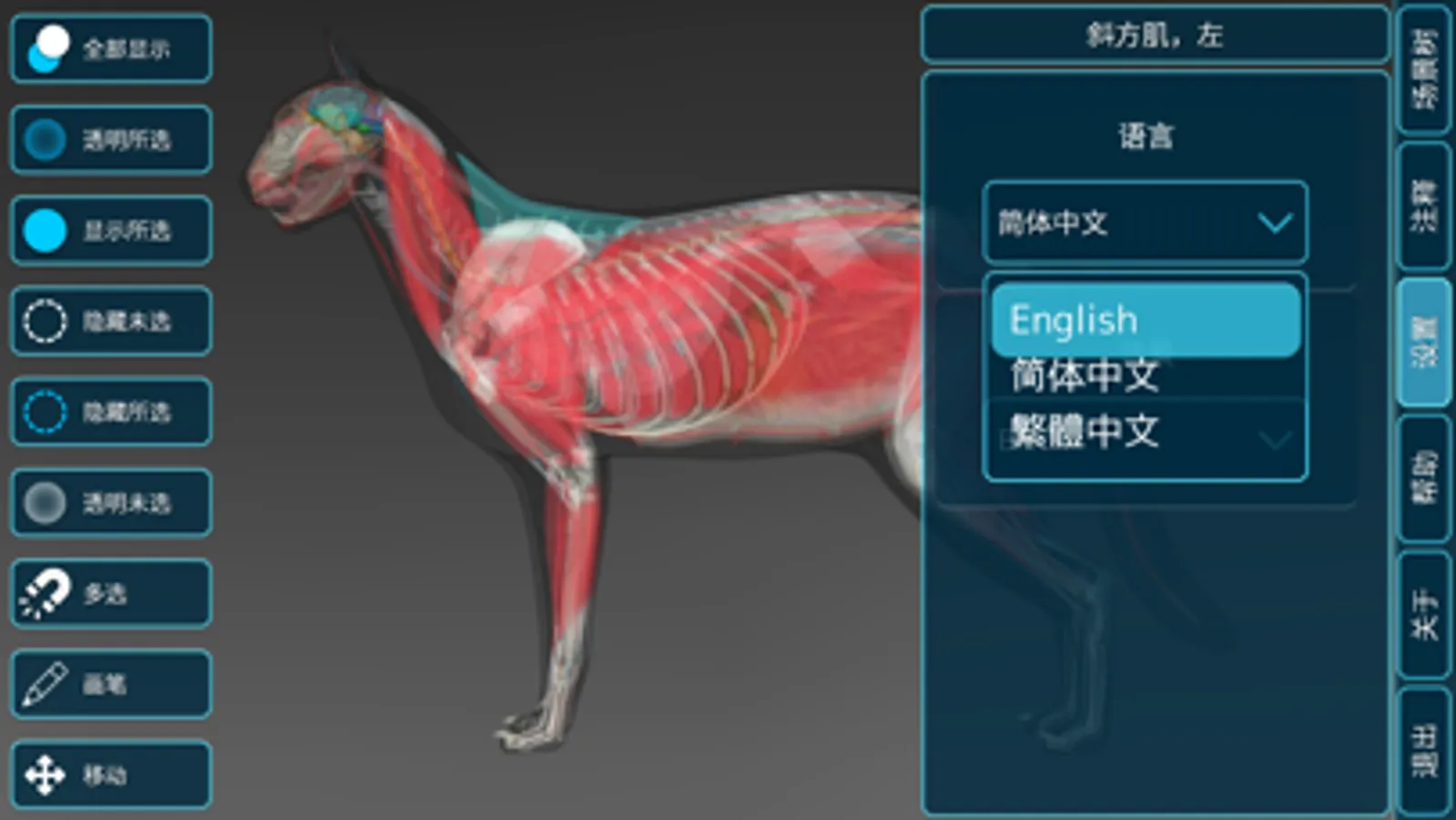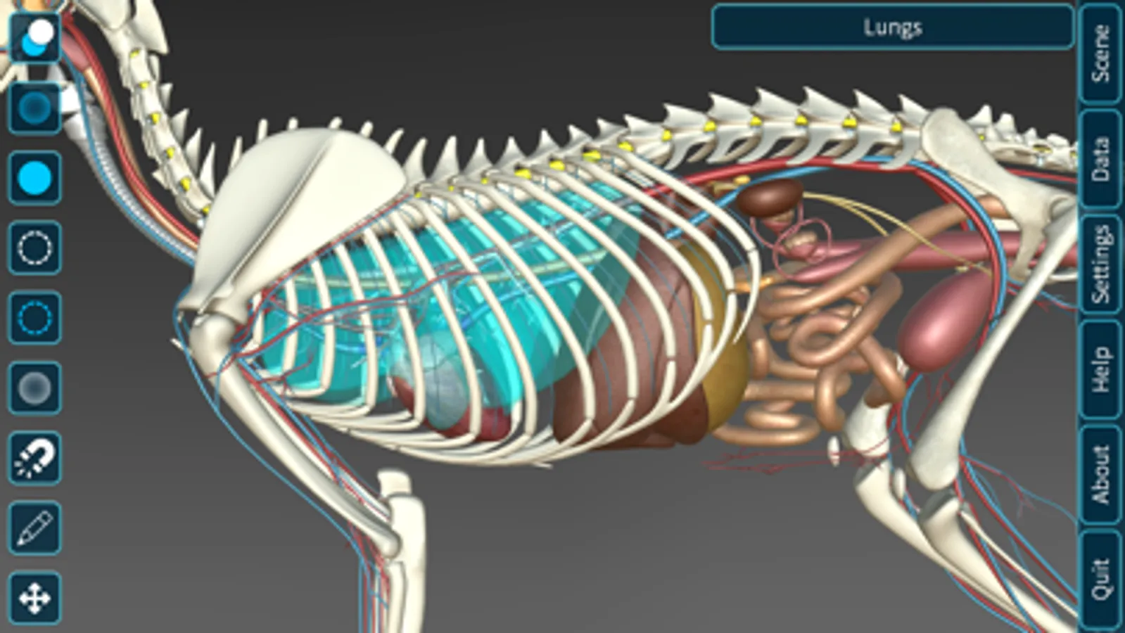 Visible Cat is a powerful 3D cat anatomy app useful for veterinary professionals, veterinary students, and all users interested in the structures of the cat body. It covers skeleton, muscles, blood vessels, nerves, ligaments, as well as internal organs and brain. This 3D virtual model software of the cat makes it easy to learn anatomy in veterinary education, allowing recognizing structures, exploring the cat body, isolating regions or body parts with the possibility of easily changing the point of view.