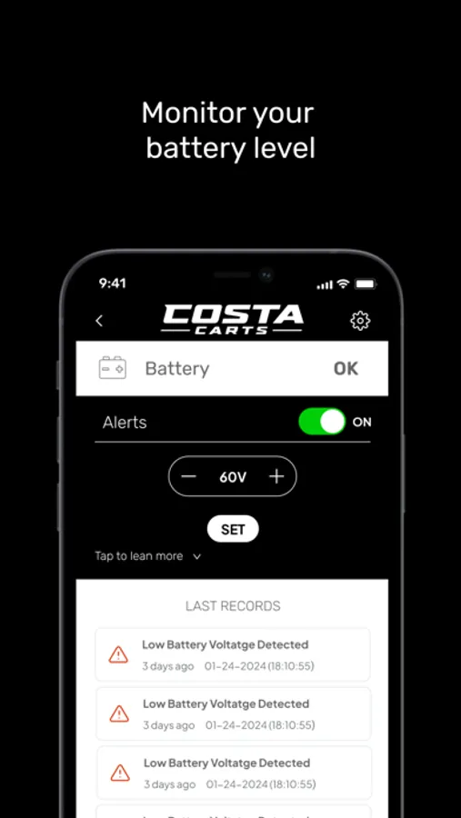 Join the Costa Carts family and download our free app! Get the latest assets news, event updates, and explore advanced features like optional telemetry services.