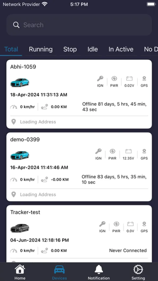 View the status, location, wheel path and alert information of all GPS devices under the current account