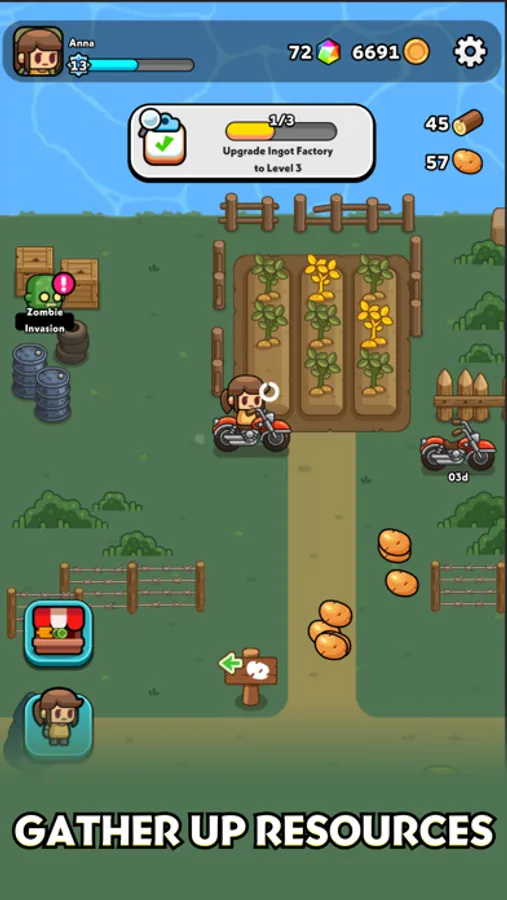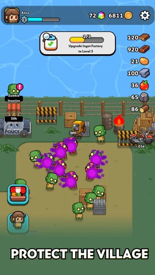 Cut down trees, mine resources, construct buildings, plant crops, craft items, fight zombies and enjoy the survival game.