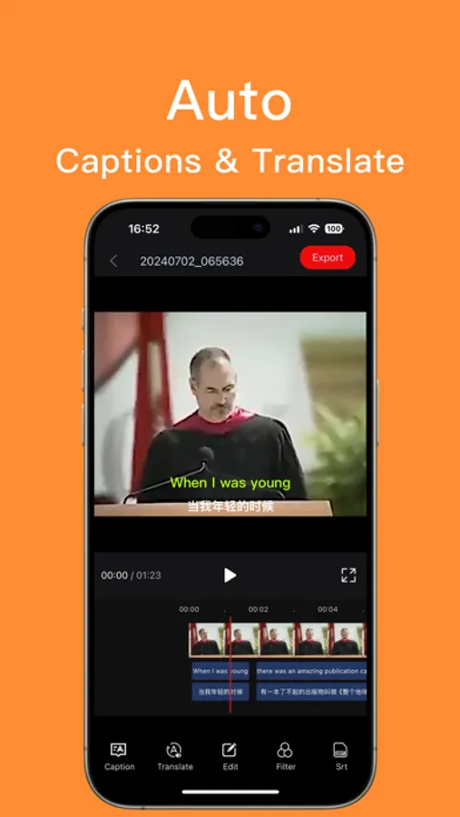 • Auto Text Captions: Easily convert videos to text transcripts.Transcribe and translate between English, Chinese, Japanese, and 130+ languages.