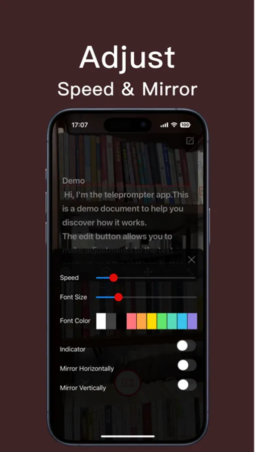 • Mirroring Options: Whether you're using a physical teleprompter setup or just your phone, you can mirror the text horizontally or vertically.