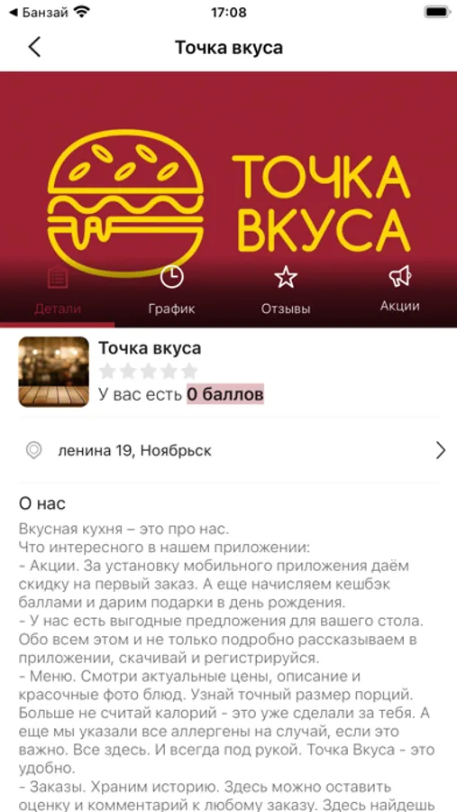 - Меню. Смотри актуальные цены, описание и красочные фото блюд. Узнай точный размер порций. Больше не считай калорий - это уже сделали за тебя. А еще мы указали все аллергены на случай, если это важно. Все здесь. И всегда под рукой. Точка Вкуса - это удобно.