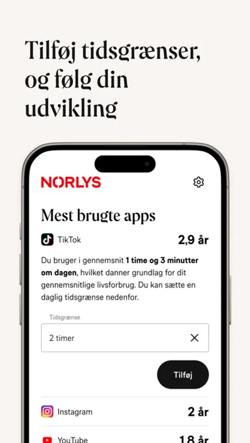 Med Skærm Tiden fra Norlys kan du låse de apps, der stjæler din tid, når du er sammen med dine nærmeste. Du får et overblik over din skærmtid, og kan derefter vælge specifikke tidspunkter og steder, hvor du vil låse udvalgte apps.