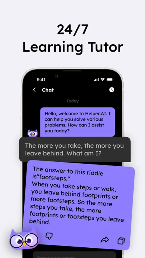 AI-Powered Chat: Feel free to chat with Helper.AI whenever you need clarity, guidance, or have questions. Helper.AI understands the context of your tasks within the app, ensuring constant support. To start a chat, simply click on the Helper.AI icon. With Helper.AI's boundless patience, you can ask as many questions as you need to master any concept!