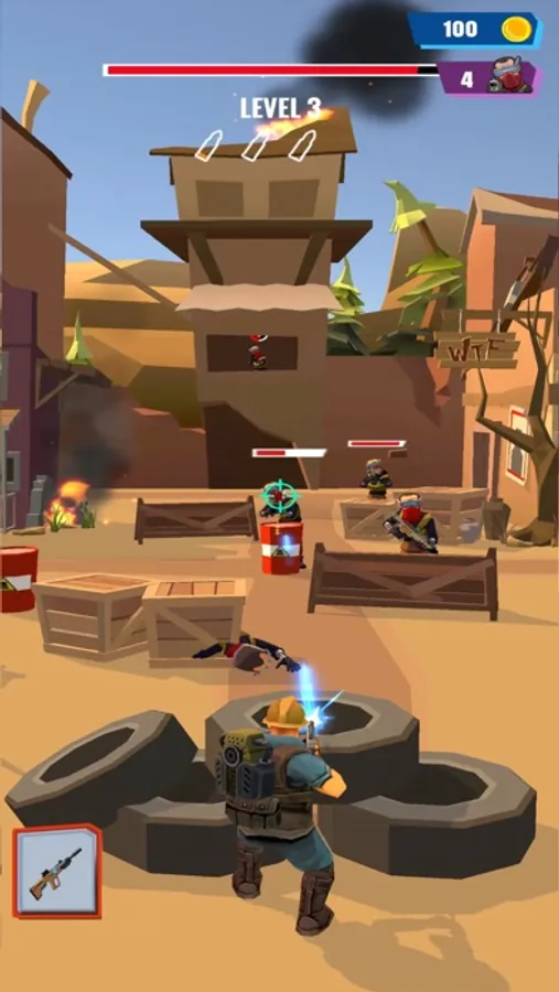 Clear and shoot obstacles to unlock an arsenal of powerful weapons. Test your aiming accuracy by shooting down targets and enemies. Immerse yourself in heart-pounding run and gun game and shooting targets at impossible distances. Enemy has different kind of weapon.