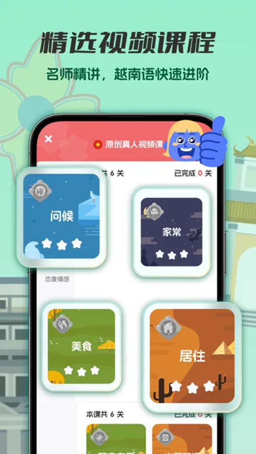 特邀越南本地語言教師錄製高清越南語教學視頻,涵蓋了從基礎發音、語法規則到日常用語等多個方面。 無論您身處何地,只要有手機就能隨時隨地觀看學習。