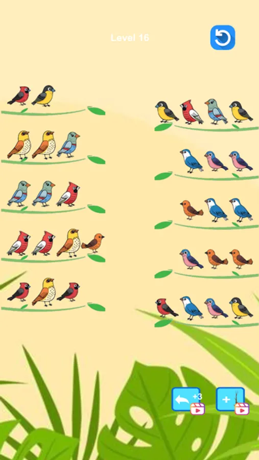 Bird Sort Funny is a fun and challenging game for everyone. Your task is to help birds of the same kind on the tree branches.