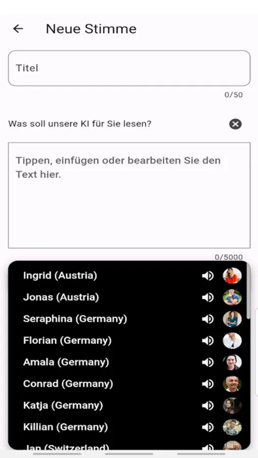 Unsere App, "Text zu natürlicher Sprache," ist Ihre perfekte Lösung, um Texte in natürliche Stimmen umzuwandeln – sowohl auf Deutsch als auch auf Englisch. Mit unserer benutzerfreundlichen Anwendung können Sie schnell und einfach Text in beeindruckend authentische Sprachaufnahmen verwandeln.
