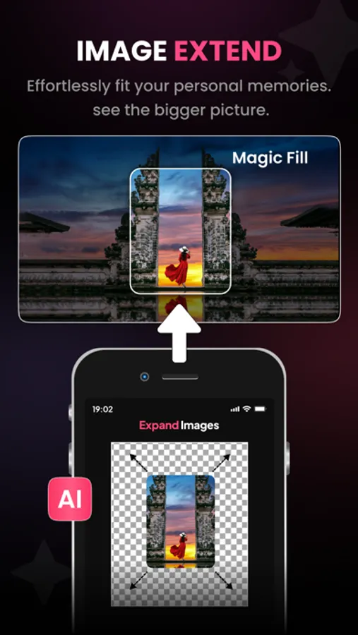 Effortlessly extend images with AI.Uncrop and expand images seamlessly with our online Outpainting: AI Image Extender. Automatic, instant, and absolutely free. Perfect for professional editing. Use AI Image Extender to expand images & backgrounds by maintaining the context to fit any platform without stretching or losing quality.Use Generative Fill AI to extend images and backgrounds while maintaining its context.Extend the canvas or background of an image using Stable Diffusion Outpainting. You can add extra space or create new visual elements beyond the original borders, enhancing the composition and creating a more immersive visual experience.Let our AI image extender explore the infinite possibilities beyond your images. Use AI to generate amazing elements and autofill images now!Want to turn a portrait into a landscape image or vice versa without any hassle? Or resize a square Instagram post for a story? Perform these tasks quickly, easily, and for free with the AI image extender. Thanks to advanced and context-aware AI, we can understand the context of your image and generate new content that seamlessly blends with the original.Outpainting: AI Image Extender offers you 4 unique plans. Subscribe to have unlimited access to premium version of the app.1 Week - $6.9950 Video Credits - $7.99100 Video Credits - $9.99200 Video Credits - $19.99* Subscription payments will be charged to your iTunes account at confirmation of your purchase and upon commencement of each renewal term. Subscription with a free trial period will automatically renew to a paid subscription. You can cancel your subscription or free trial in the iTunes settings at least 24-hours before the end of the free trial period. The cancellation will take effect the day after the last day of the current subscription period and you will be downgraded to the free service.* Please note: any unused portion of a free trial period (if offered) will be forfeited when you purchase a premium subscription during the free trial period.More details :https://ishabhingradiya.blogspot.com/2024/06/privacy-policy.html https://ishabhingradiya.blogspot.com/2024/06/terms-of-use.html