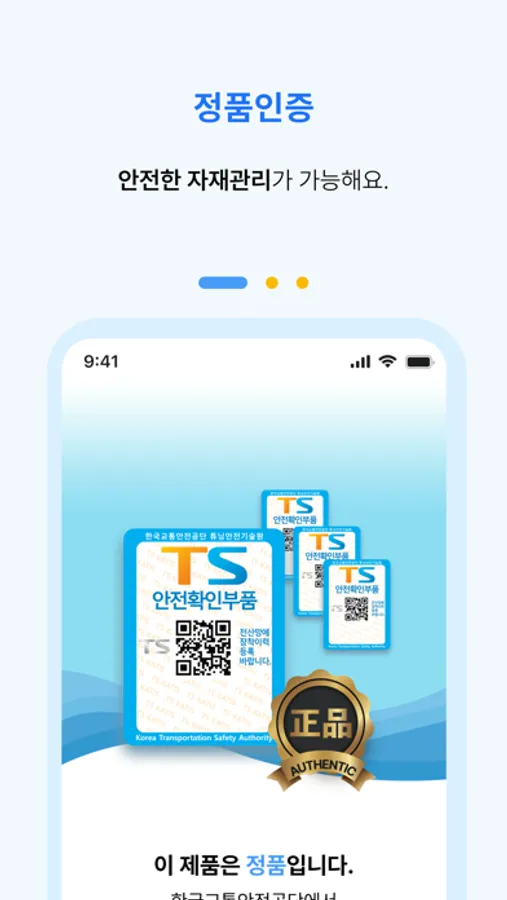 TS스캐너는 TS(한국교통안전공단)에서 부착한 안전확인부품 라벨을 인식하여 정품 인증을 확인할 수 있는 앱입니다.