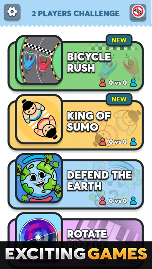 This multiplayer game collection includes a variety of minigames and antistress games that can be easily accessed at any time. Challenge your friends and play satisfying games on the same smartphone or tablet from anywhere in your free time. This fun 2-player game has minimal graphics to ensure uninterrupted gameplay and allows both users to see their points properly on a single device. Enjoy this collection of entertaining party games! Download Now!