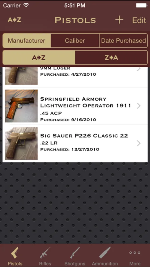 - Add information and photos for your firearms, accessories, ammo, knives and range visits and more.