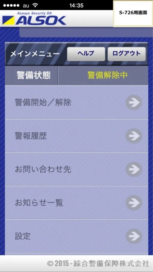 ALSOKが提供する警備サービスのコントローラーS-726およびS-728を操作するためのアプリです。