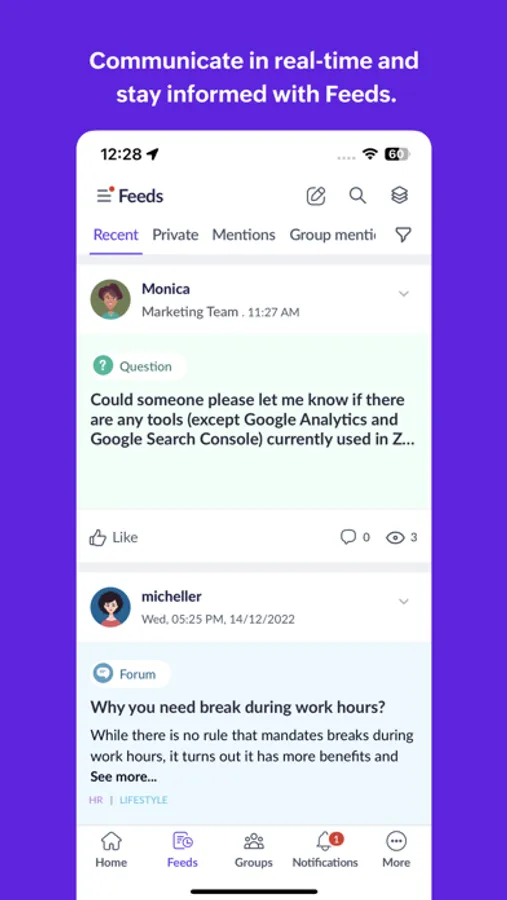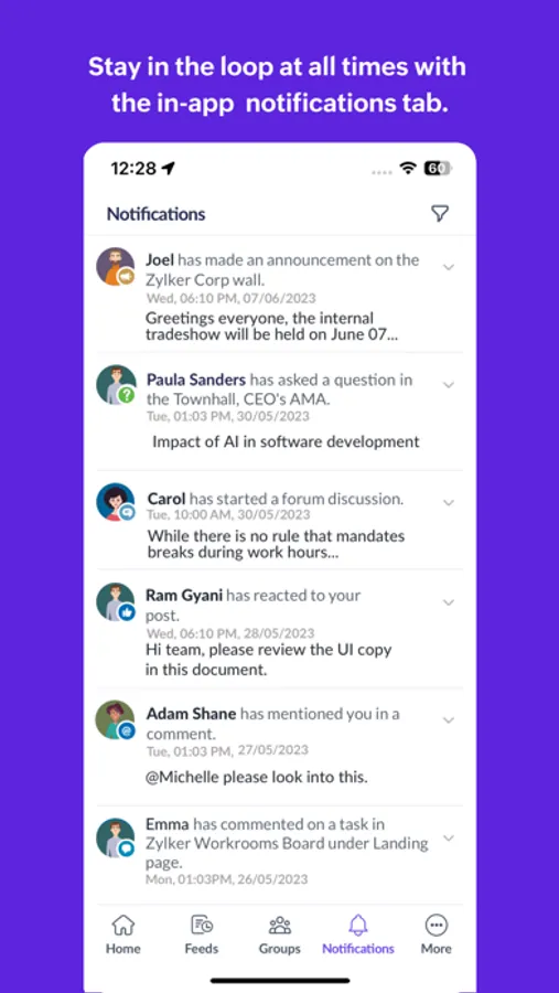 With real-time notifications from Zoho Connect, you will never miss anything important at your workplace.