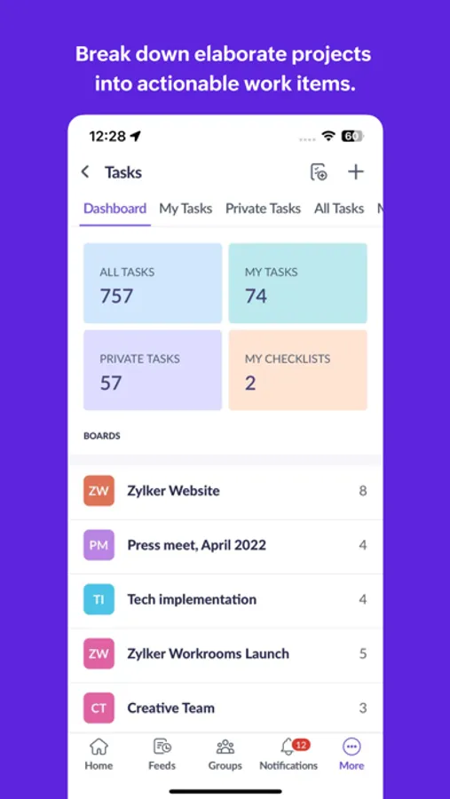 Organize teams into groups, discuss and share ideas in real-time, and work together. You can create groups based on departments, projects, or to discuss common topics.