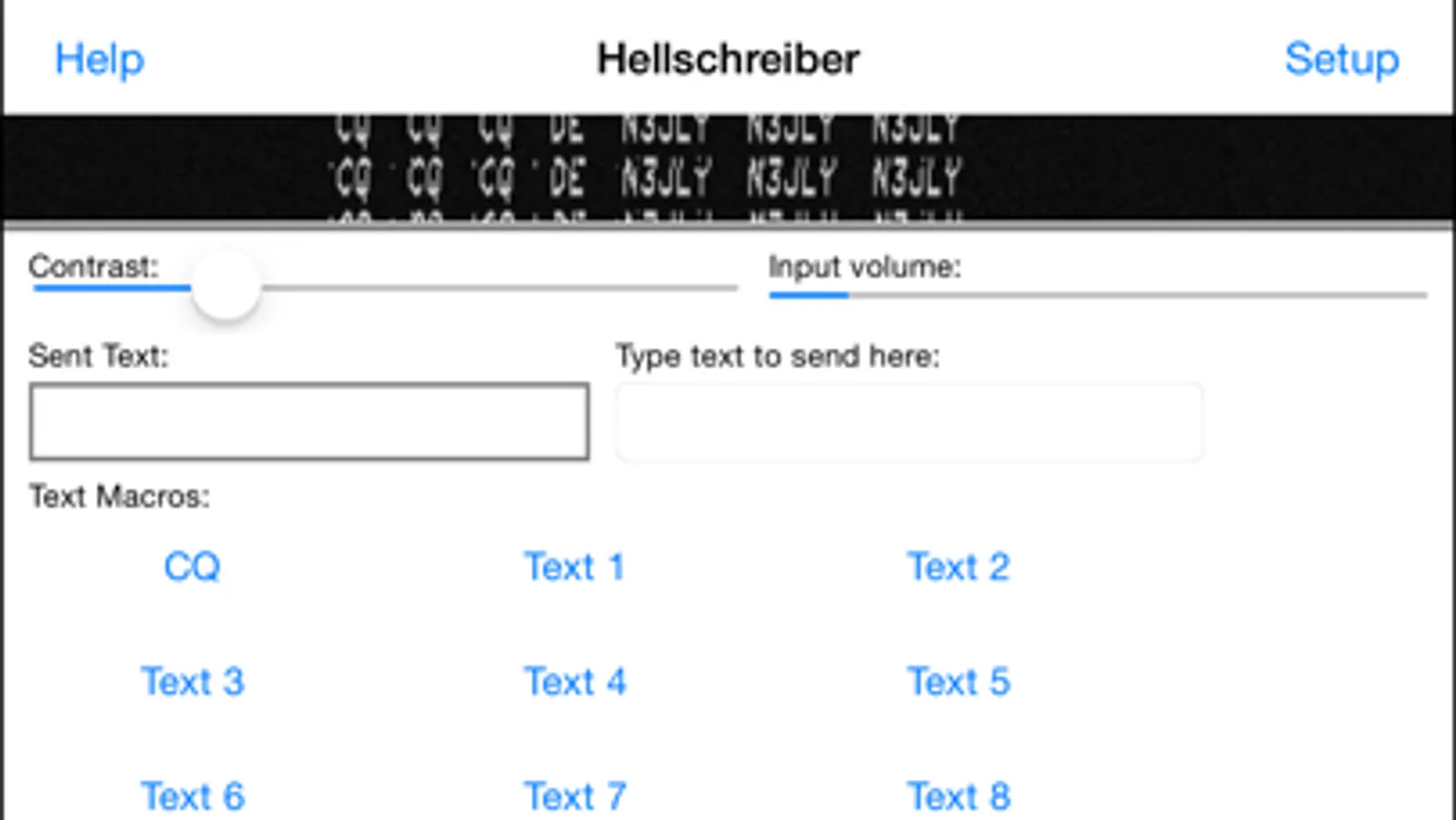 Feld Hellschreiber lets you decode and transmit Feld Hell messages. Decoded text is continuously scrolled across the top of the display. You can type in text to transmit, or press a button to easily send canned text messages, such as CQ calls. Sound is picked up from your radio's speaker via the internal mic in your device, and transmitted audio comes out the speaker - you can also connect a patch cable to your radio's mic input via the headphone jack on your device to transmit the audio, if you wish.