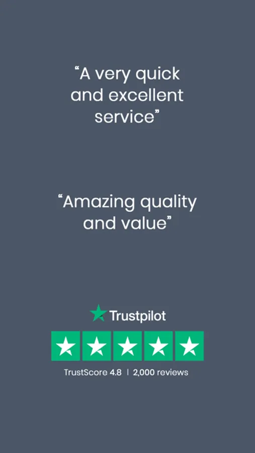 - We are rated “Excellent” on Trustpilot with over 1000 5-star ratings.