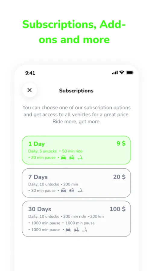 Il servizio offre una flotta di mezzi elettrici, progettati e costruiti in Italia, disponibili per il noleggio tramite un'app sul tuo smartphone.