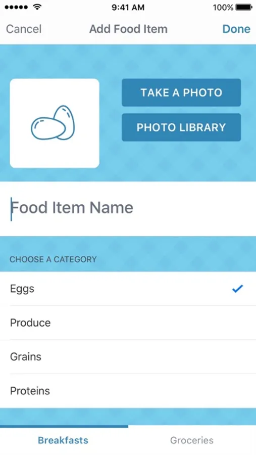 2. Includes an extensive, completely customizable Food Library of eggs, produce, grains, and proteins.