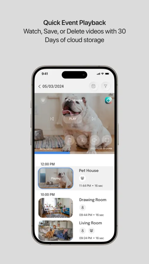 - Secure and extended storage: Event videos are stored securely in the cloud for a period of 30 days, enabling you to review and download the videos that are important to you.