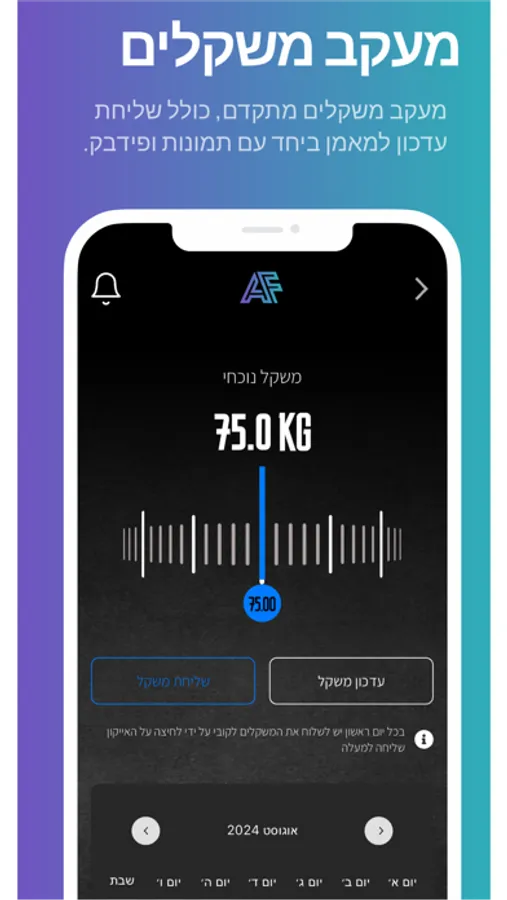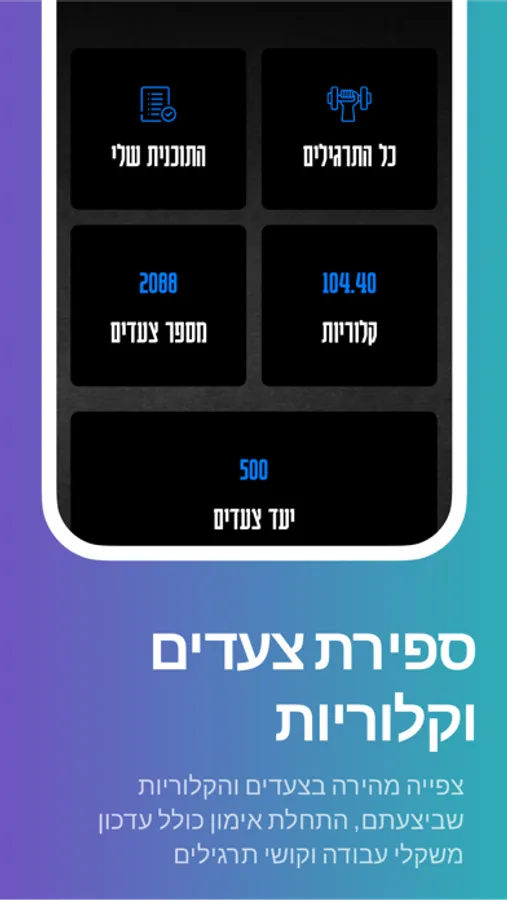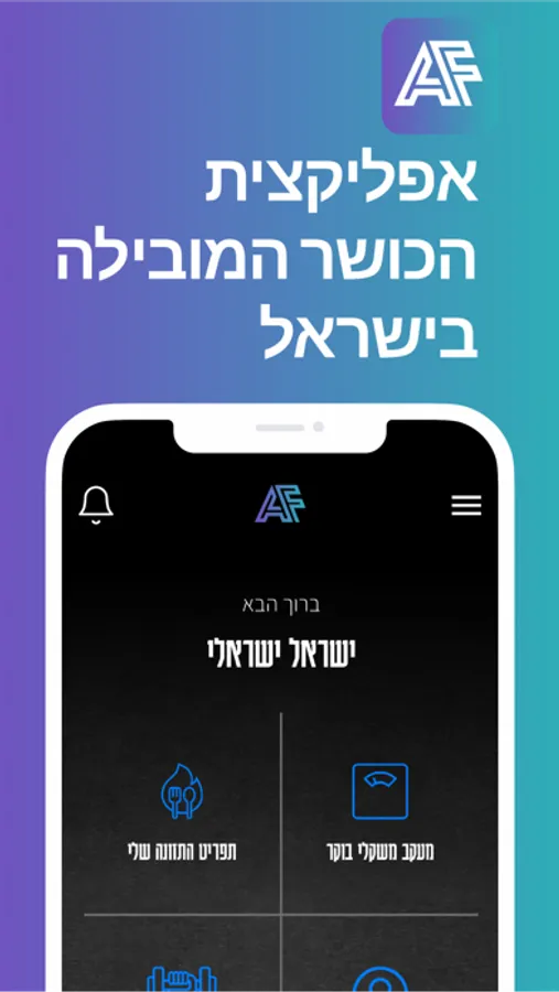אפליקציית הכושר המובילה בישראל עכשיו בכף ידך! נהלו ועקבו אחר המשקל שלכם, צפו בתוכניות תזונה ואימונים המותאמים על ידי המאמן שלך ועוד