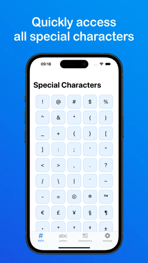 Discover Special Characters, the must-have app to enrich your texts with unique characters, expressive emojis, and creative kaomojis.