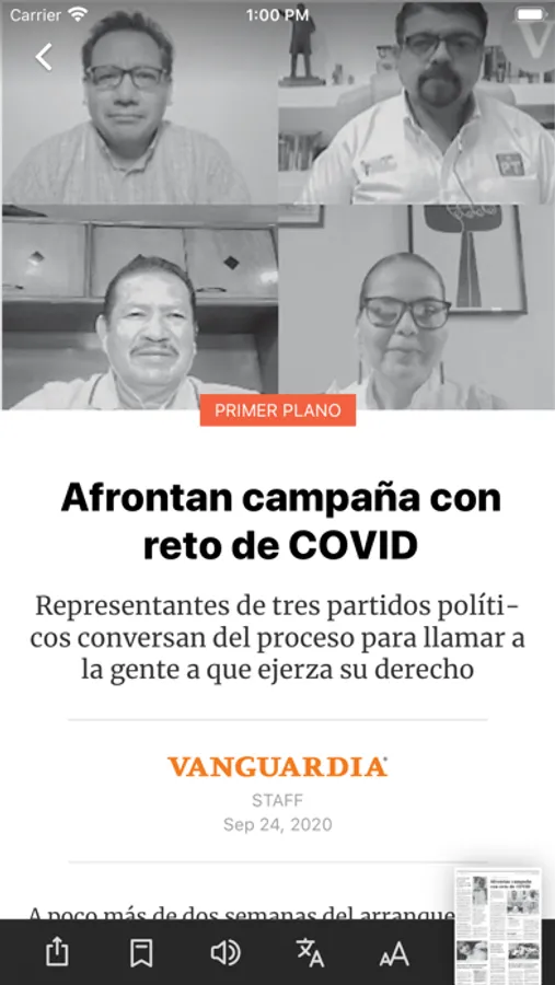 Vive la nueva experiencia de lectura y visualización de calidad full HD de nuestras ediciones con Vanguardia HD, ahora con la posibilidad de escuchar las noticias mientras manejas, viajas o haces ejercicio.