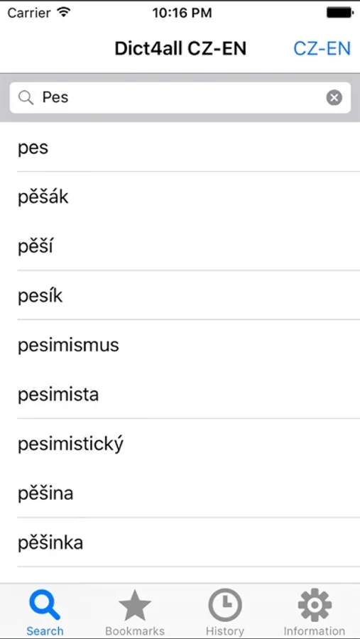 This czech-english and english-czech dictionary contains more then 160 000 czech and 125 000 english words, phrases and vocabulary items. That’s why it’s the biggest dictionary on the App Store!