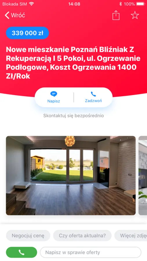 • aktywny przycisk zadzwoń i napisz na karcie ogłoszeń