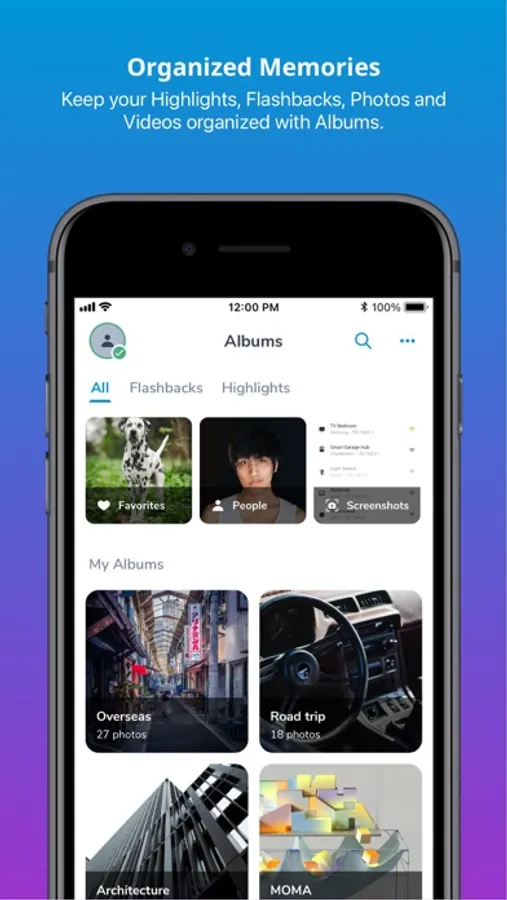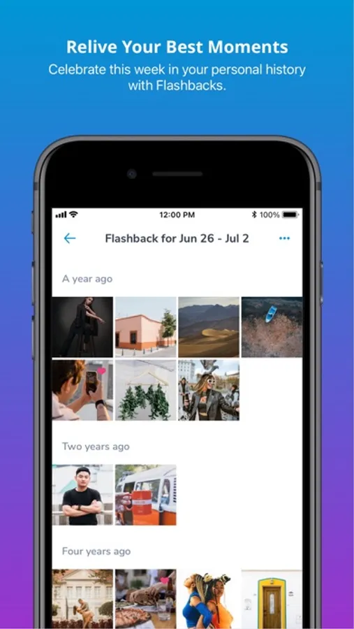 • Memories that surprise you in the future - Reconnect with meaningful videos and photos from past events, parties and vacations with Flashbacks
