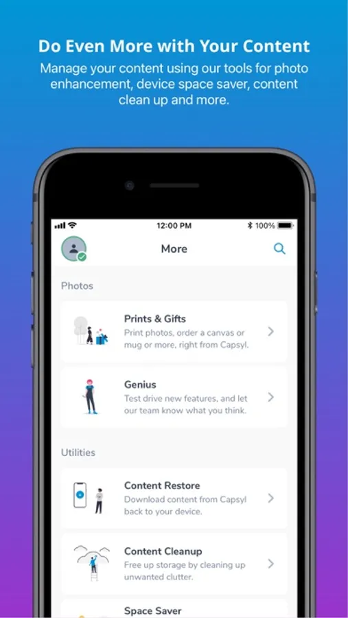 Automatically backup and store your most important content so you never have to worry about lost, stolen or broken devices again.