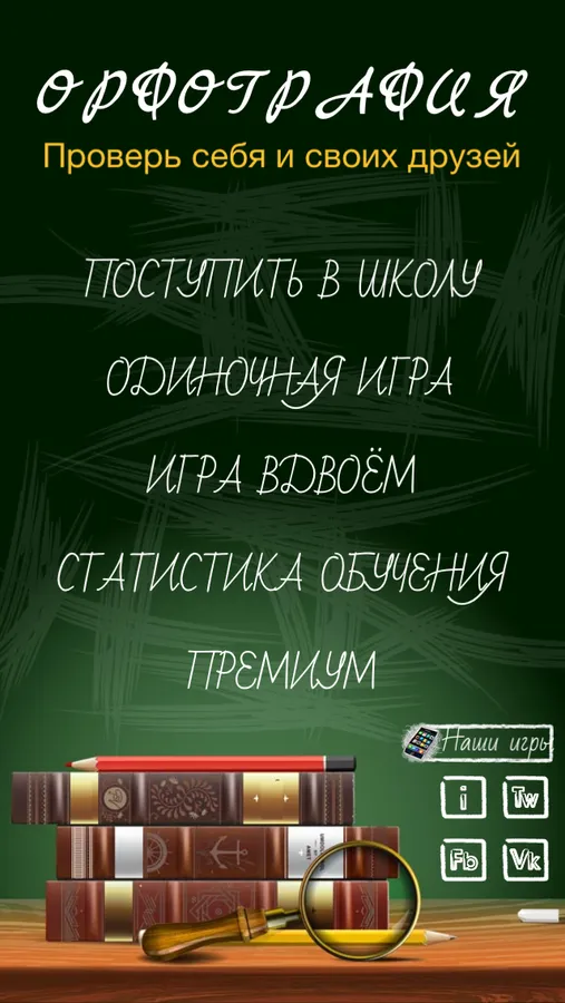 - Играй с друзьями. Специальный режим игры в котором вы можете сравнить свои знания русского языка.