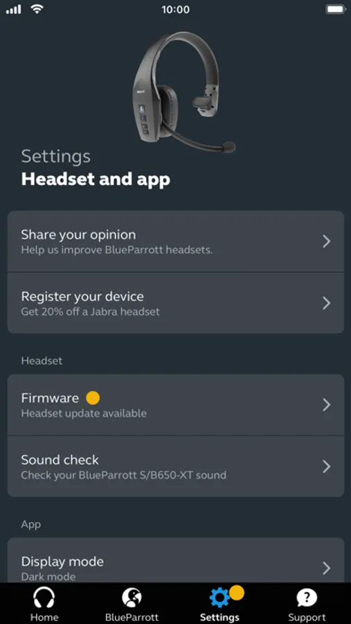 Get the most from your headset with the free BlueParrott App. The app offers a range of extra features that enable you to personalize and enhance your BlueParrott headset.