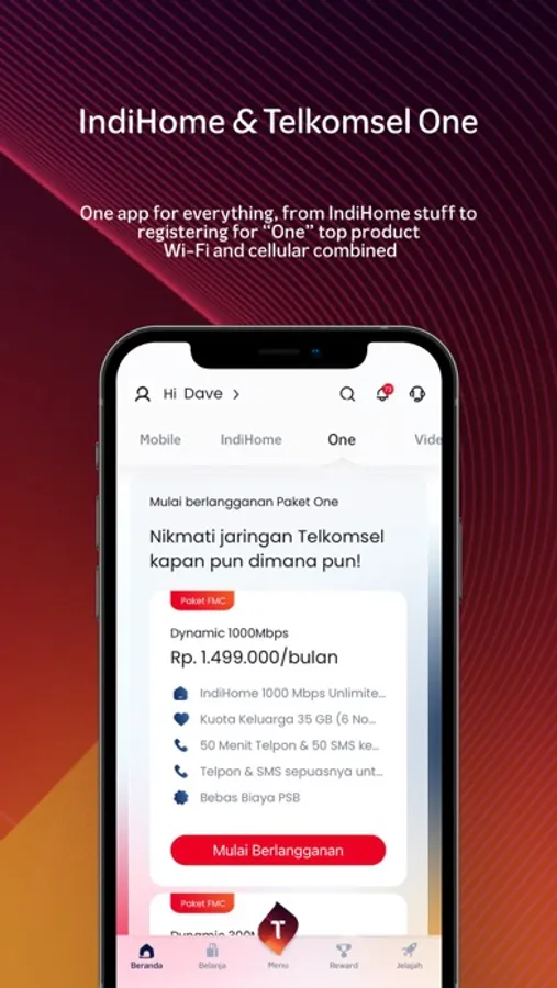 We would like to introduce Telkomsel One too—our latest product that combines IndiHome home internet, Kuota Keluarga cellular service, and Orbit internet. You can choose Telkomsel One package available on MyTelkomsel dashboard and enjoy seamless internet connection anywhere.