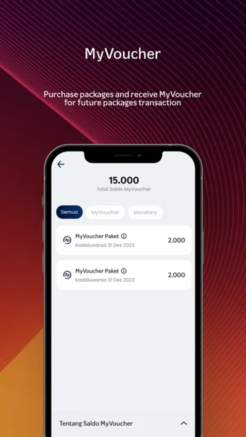 Now you can use MyVoucher too. Every time you buy a package on MyTelkomsel, you can get a voucher with a certain nominal value. This voucher can be used as a discount on your next package purchase, so you can save a lot.