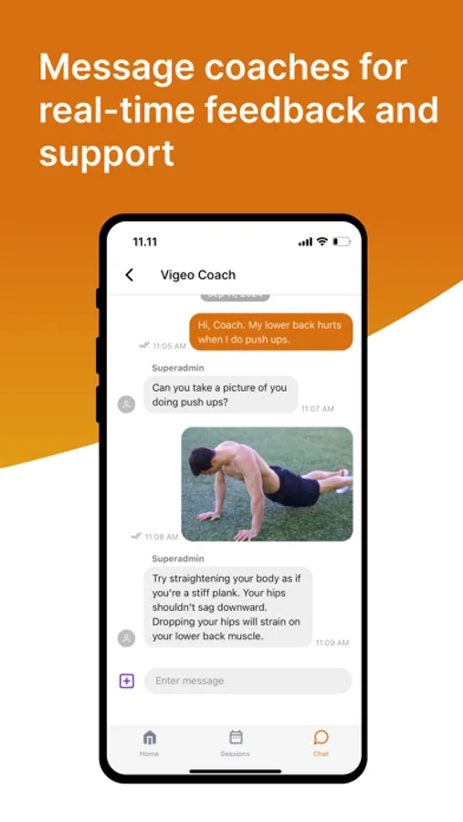 Directly message coaches for real-time support and feedback, and access a centralised chat history.