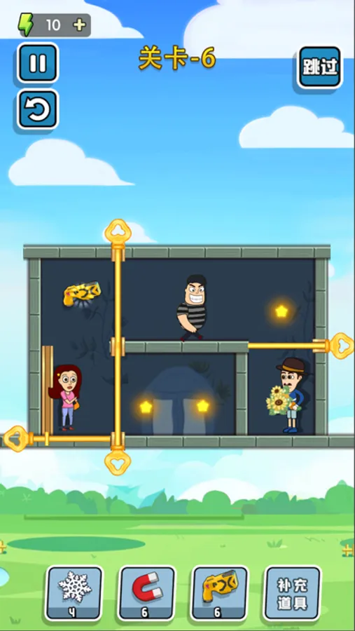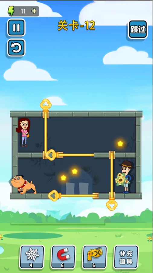 2. 收集目标:在营救女孩的同时,要注意在关卡中收集星星,每关都有3颗星星可供收集。星星的收集可以为游戏提供换肤、购买道具的能力。一定不要错过任何一颗星星!