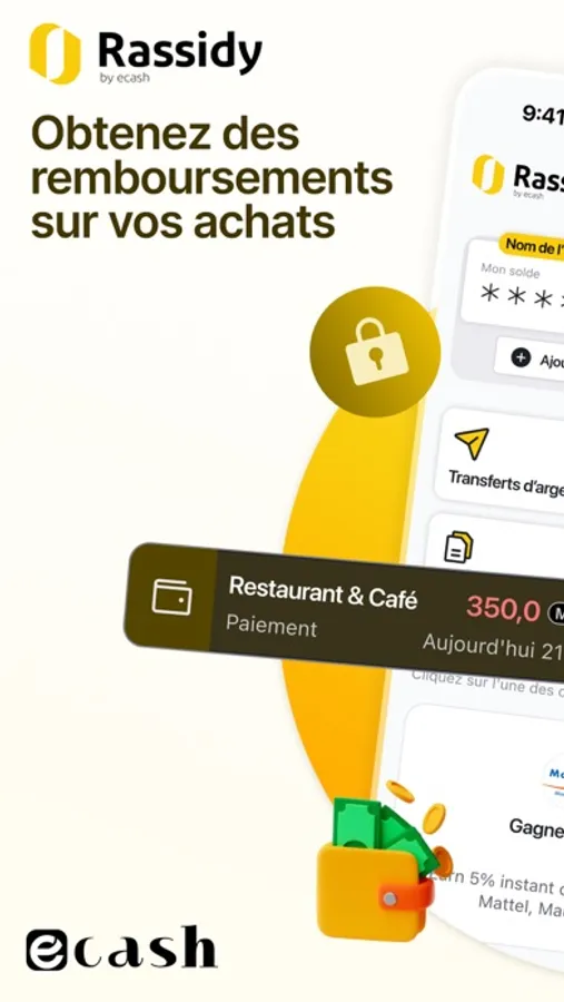 Avec RASSIDY, portefeuille mobile de paiement électronique, pratique et sécurisé ; nos utilisateurs peuvent, en toute simplicité, payer des biens et services, transférer ou recevoir des fonds et profiter d’autres fonctionnalités innovantes comme CASHBACK.