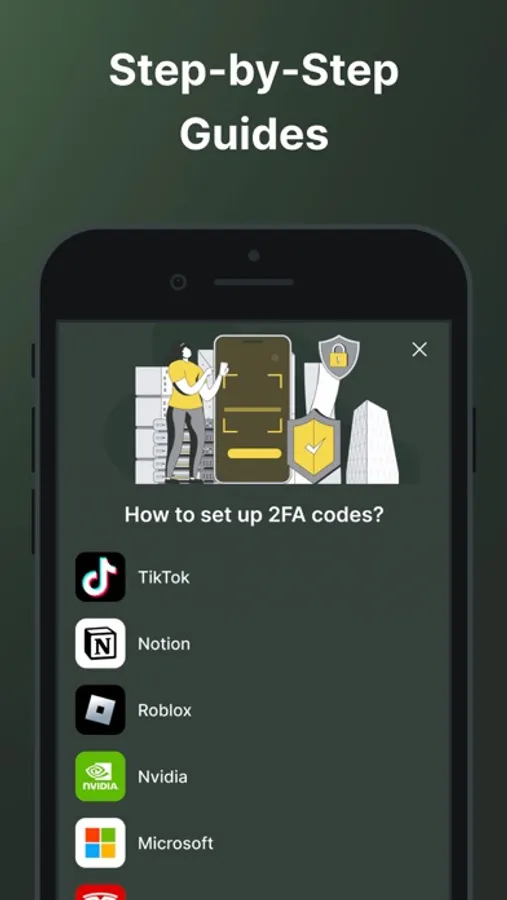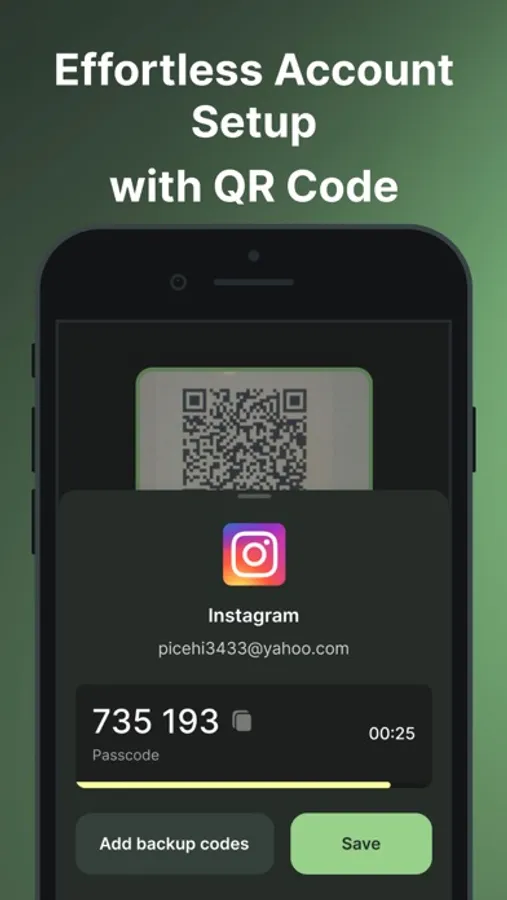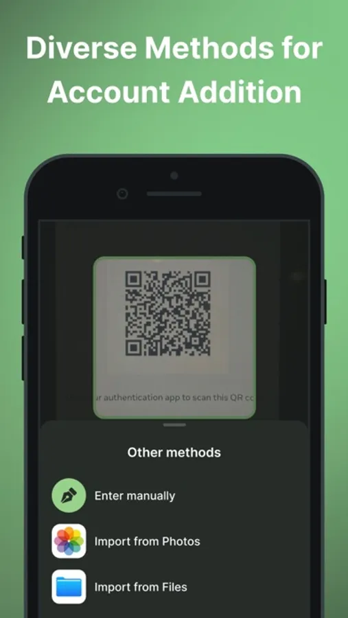 * Account Setup with QR Code - simply scan the QR code provided by your online service, and our app will handle the rest. No more manual input or complicated setups.