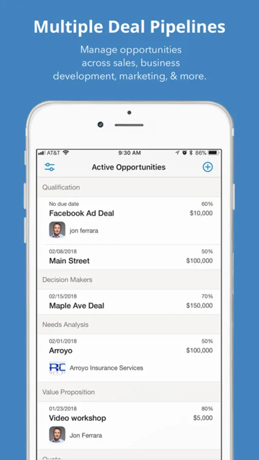 - Multiple pipeline manager helps you manage opportunities such as sales, renewals, business development, marketing, or PR.