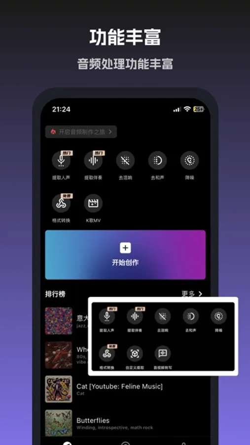 音旅是一款支持音乐生成、音乐剪辑、音频提取、格式转换、降噪、音乐拼接等多种功能与一体的软件等功能的专业音频处理软件