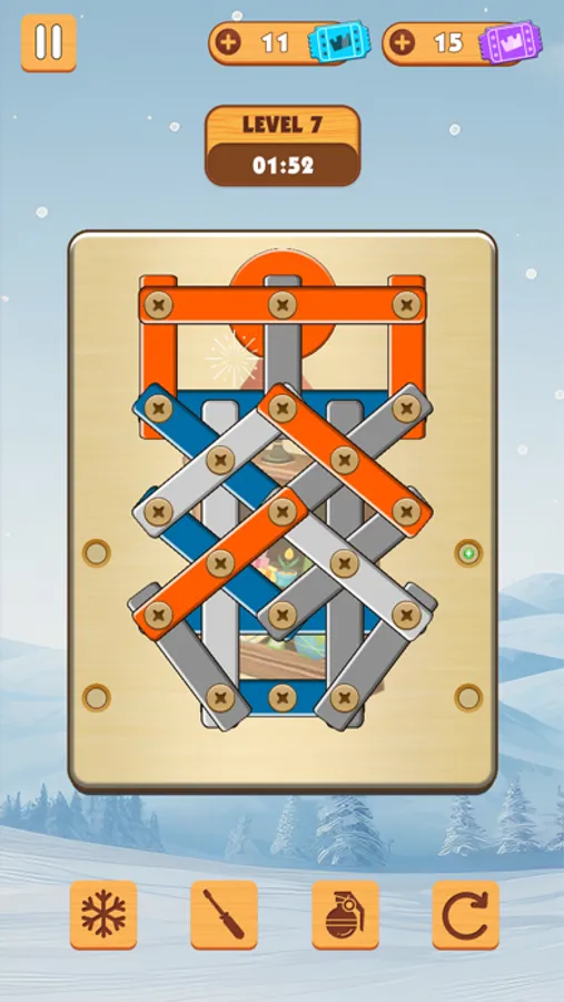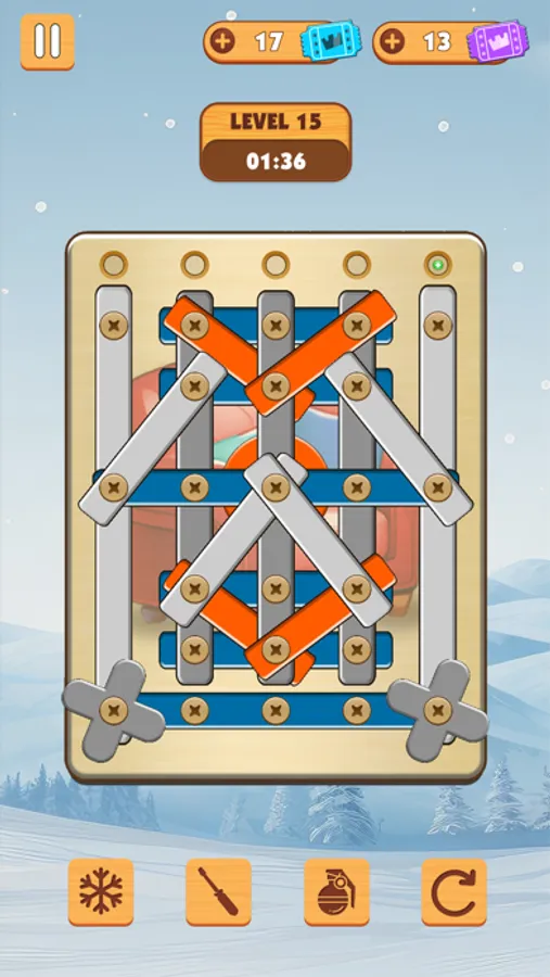 The game is that there will be different metals bars connected together through the help of nuts and bolts. There will be different items behind each level. Your task will be to unscrew all the screwed nuts and bolts and free all the bars to complete the level. Once you complete any level, the thing behind it will be given to you as a reward. Once you get the reward, it will automatically get replaced with the broken piece.