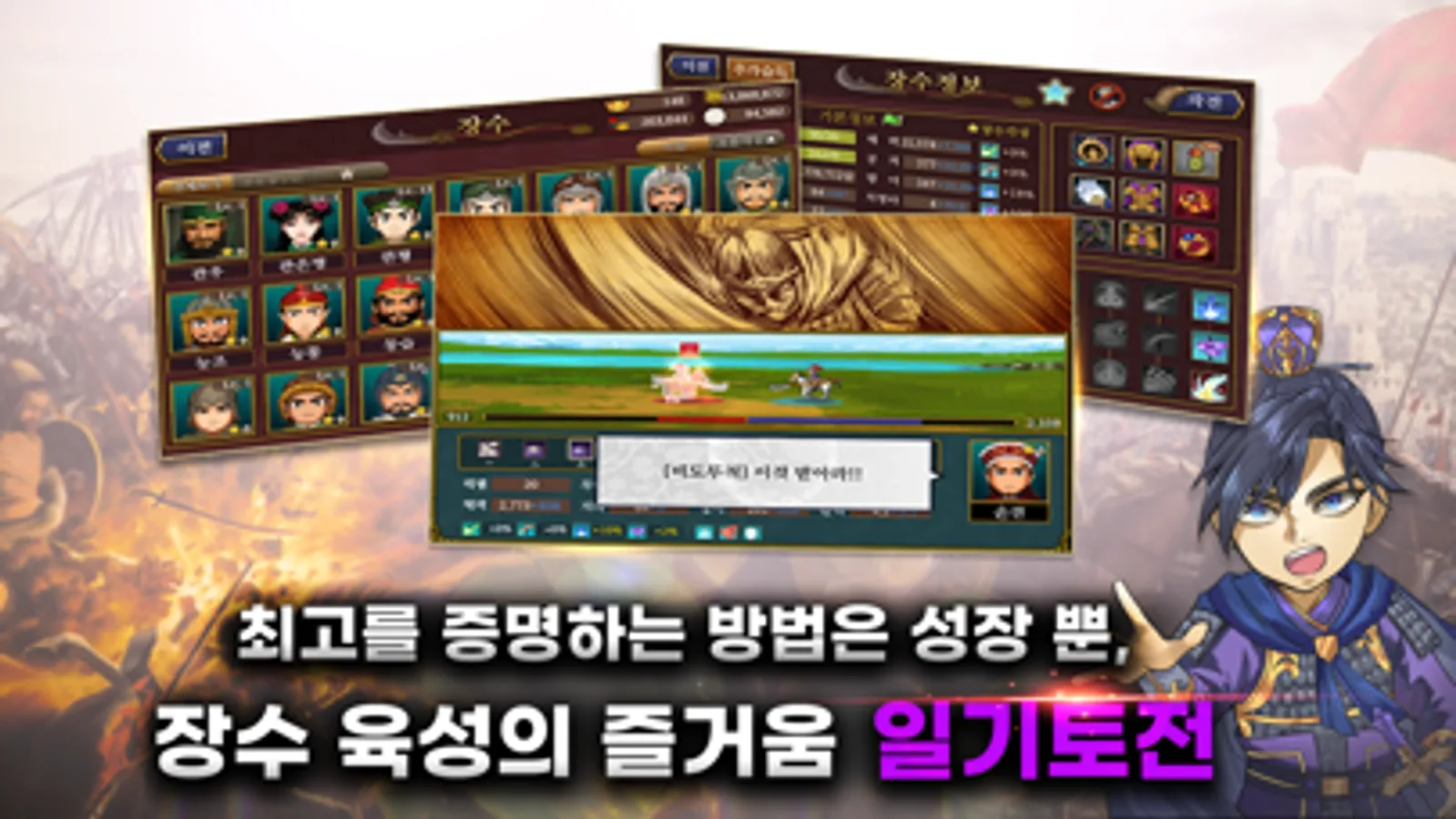 장수 별 특별 기술과 스킬트리로 대회 1위가 되어보세요!