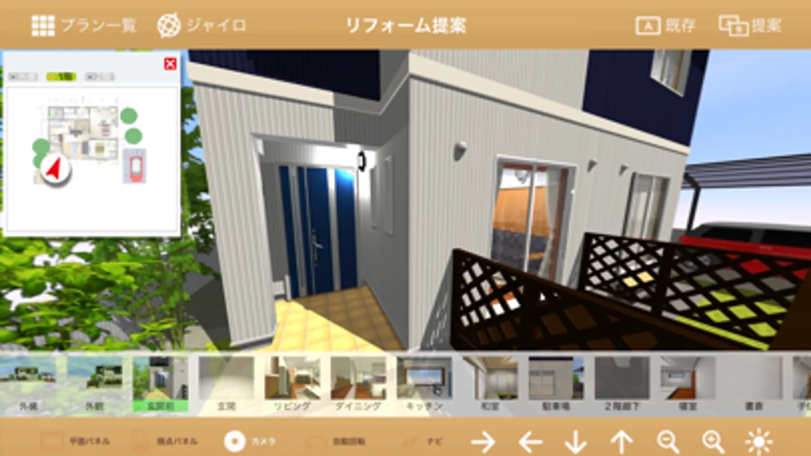 ・外観、室内の切り替えはもちろん、各階層、各部屋の表示切替はすべてワンタッチで簡単に行えます。